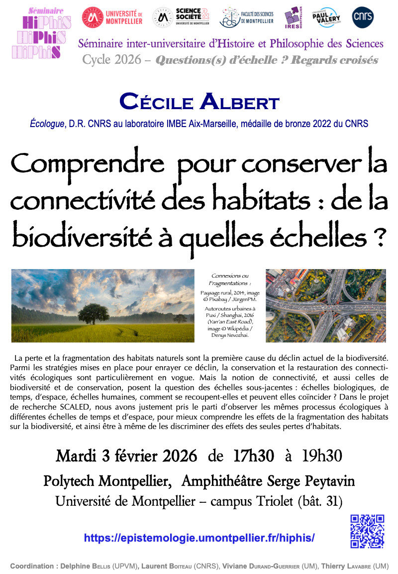 La perte et la fragmentation des habitats naturels sont la première cause du déclin actuel de la biodiversité. Parmi les stratégies mises en place pour enrayer ce déclin, la conservation et la restauration des connecti-vités écologiques sont particulièrement en vogue. Mais la notion de connectivité, et aussi celles de biodiversité et de conservation, posent la question des échelles sous-jacentes : échelles biologiques, de temps, d’espace, échelles humaines, comment se recoupent-elles et peuvent elles coïncider ?